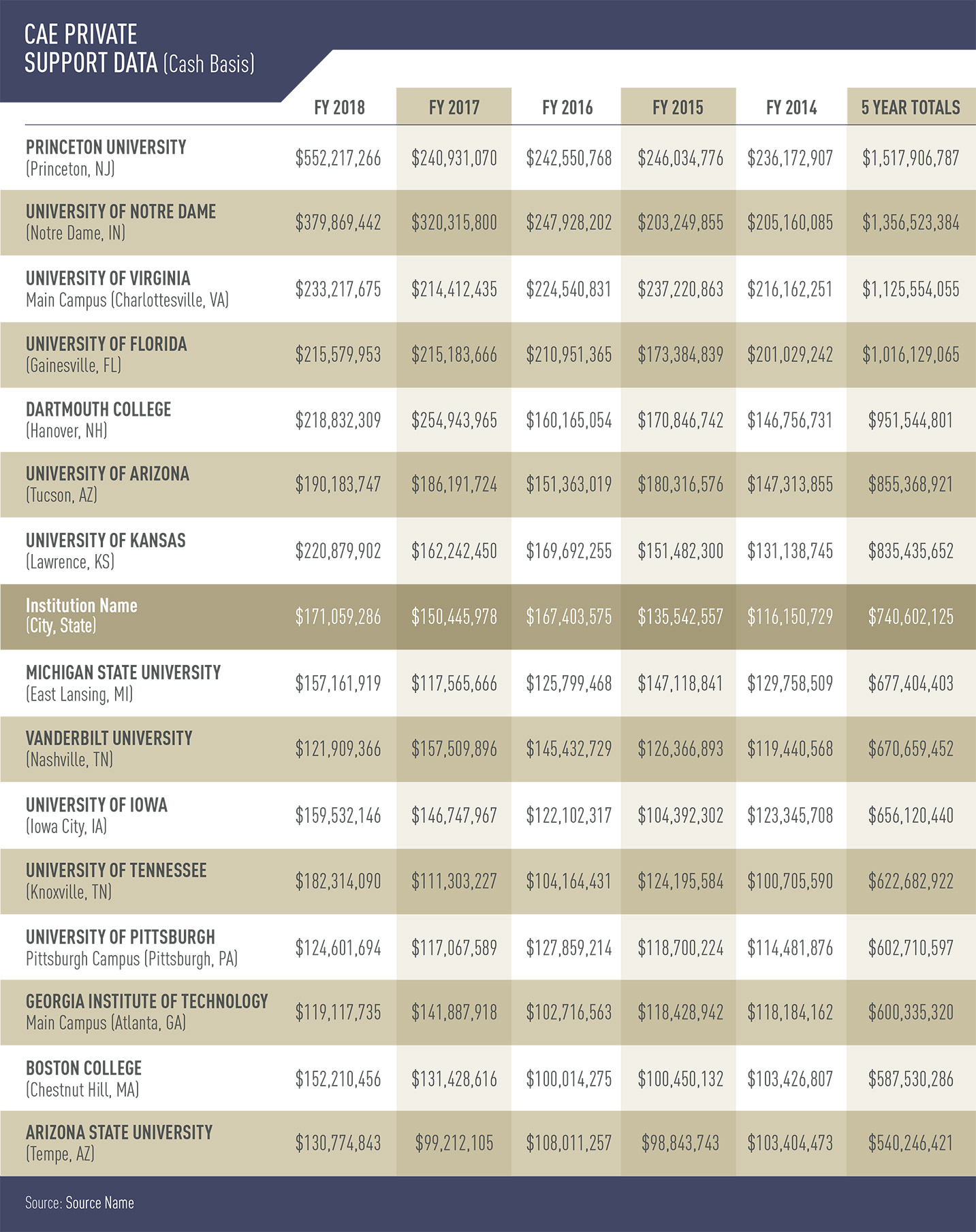 NOTE: All data and university titles have been changed for privacy.